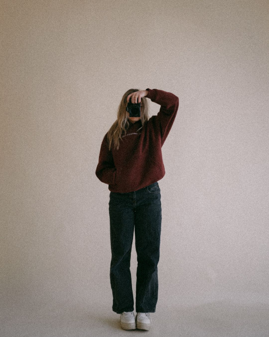 - Fits slightly oversized, model is 5'4 wearing a S.